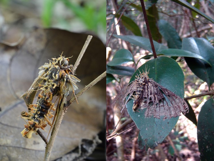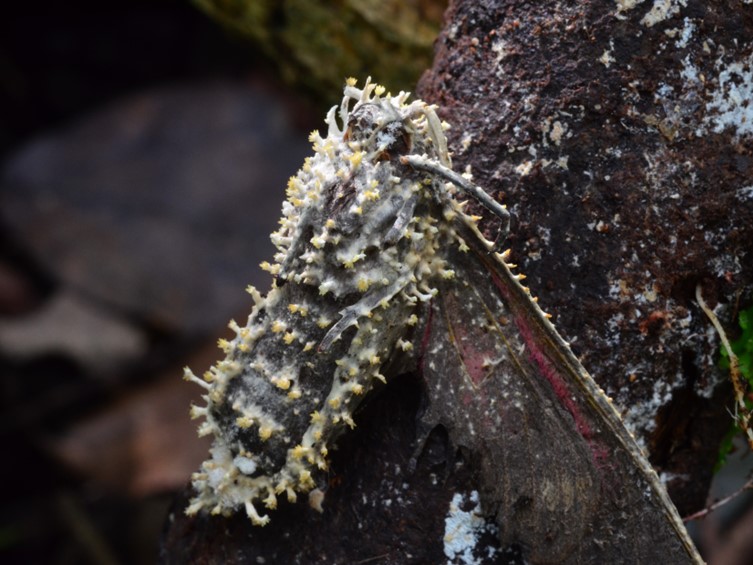 Conidia 1-celled, ellipsoid, fusoid, obovoid, smooth walled, hyaline, 3−5 × 1−2 µm. Sexual morph: Specimens found on adult moths (Noctuidae, Notodontidae), on the stem of