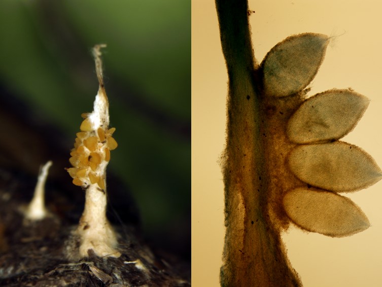 , light orange yellow, up to 10 mm long. Conidiophores