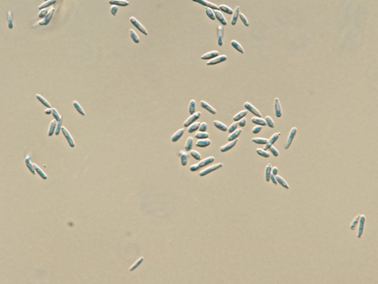 Conidia 1-celled, fusiform elliptical, elliptical, smooth-walled, hyaline, 3–6 × 1.5−2 µm. Sexual morph: