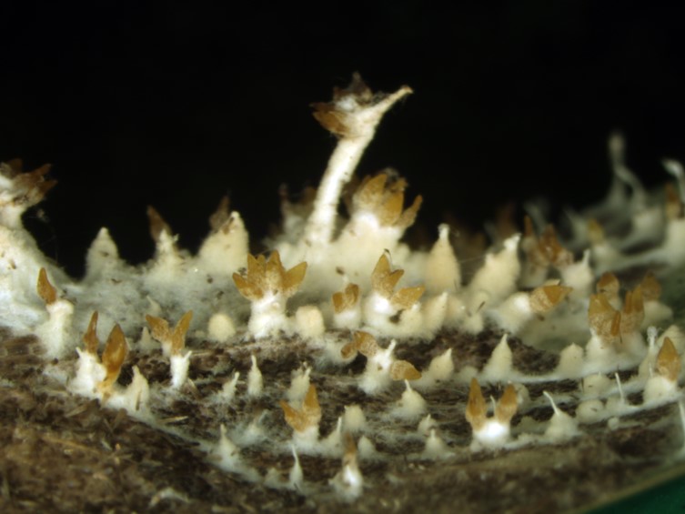 Stroma arising from host body and wing veins, white to cream, cylindrical, length ca 5 mm.