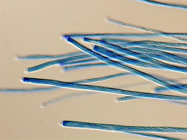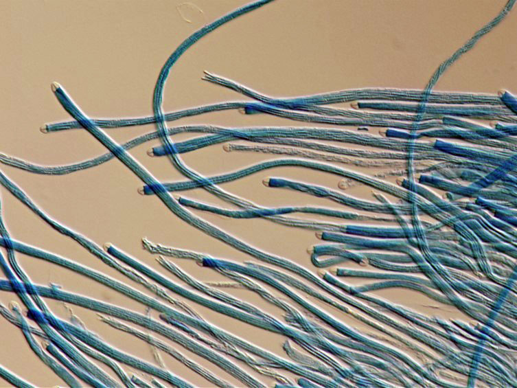 Asci cylindrical, hyaline, 170-550 × 2-4 μm.