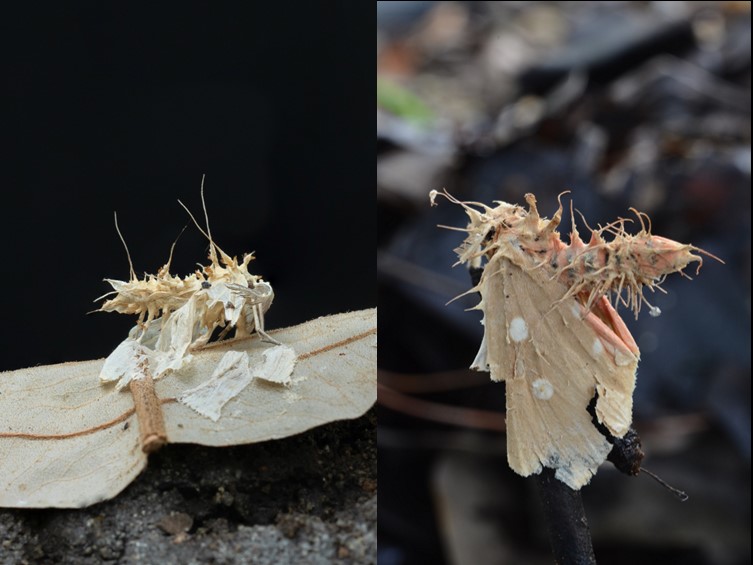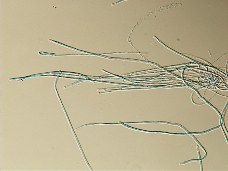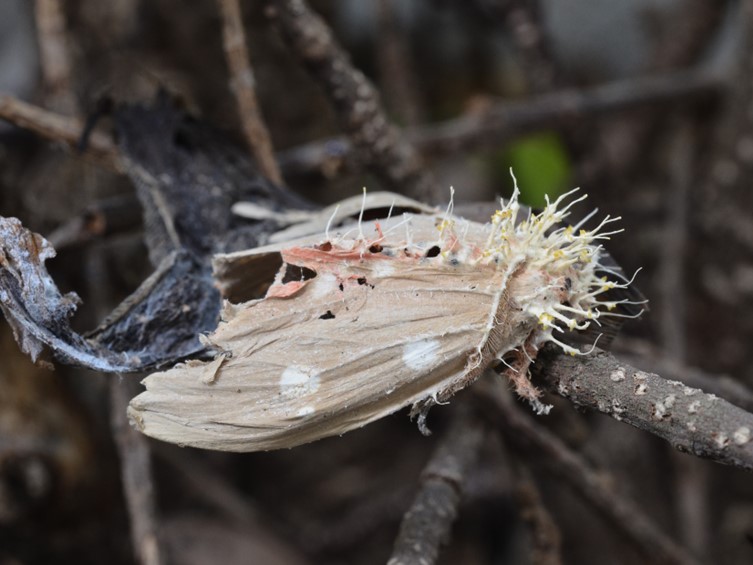 Synnemata scattered, arising from different parts of the hosts’ body, simple, occasionally curved. Two types of synnemata were observed on adult moths: