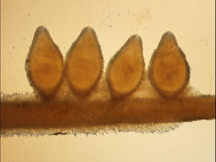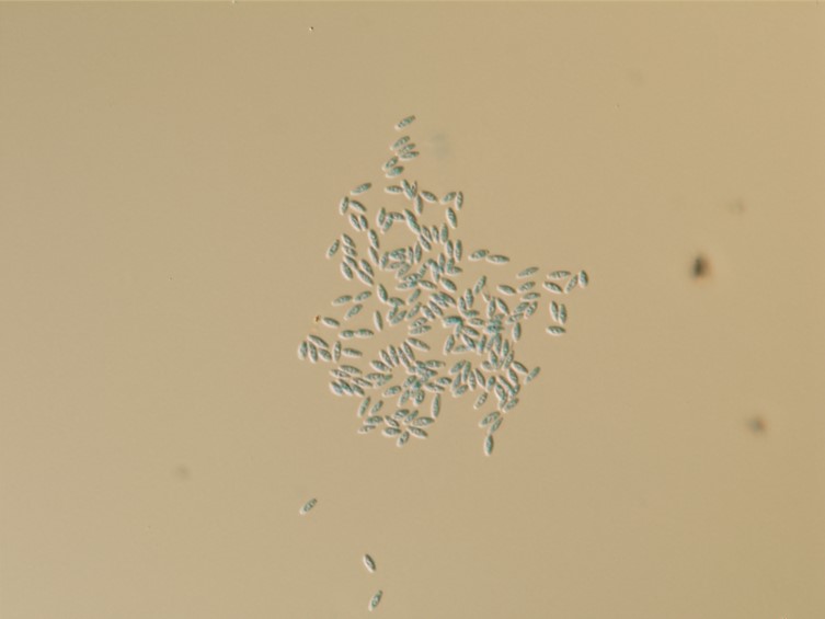 Conidia 1-celled, obovoid, smooth-walled, hyaline, 3–6 × 1.5−2 µm.