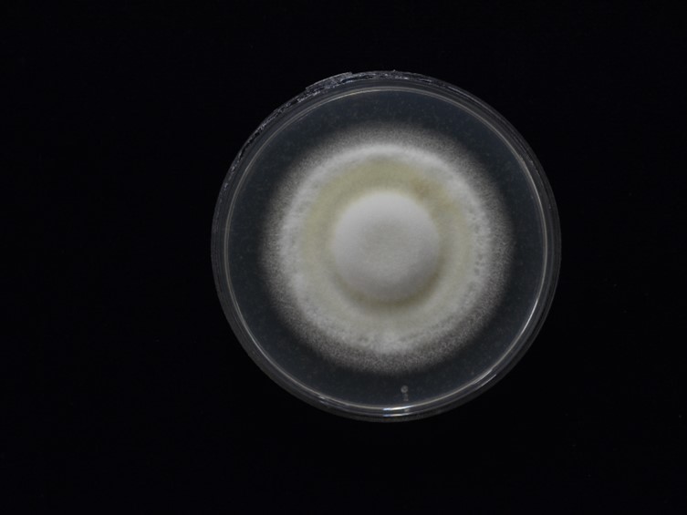 Colony on PDA compact, umbonate, cottony, entire margin, attaining a diam of 31–34 mm in 20 d, white with light greenish yellow. Conidia and reproductive structures are not observed on both media after 30 d of incubation at 25 °C.