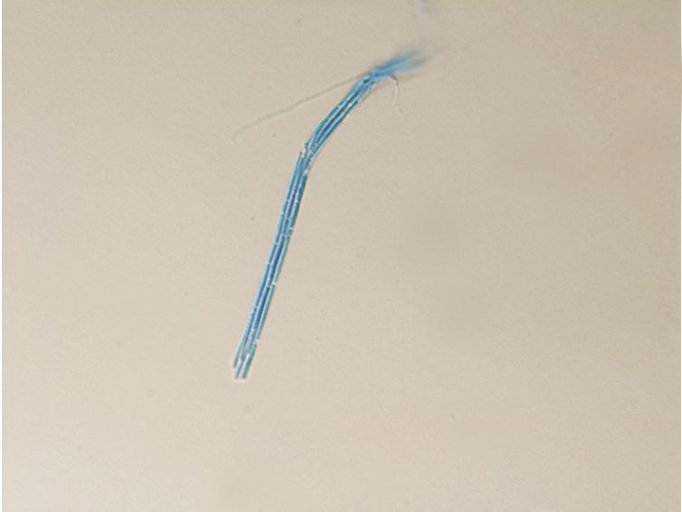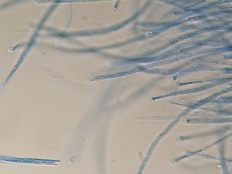 Ascospores hyaline, filiform, multi-septate, discharged into part-spores, 5-12 × 1 μm.