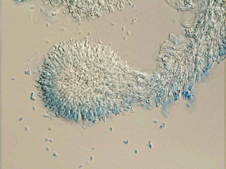 Phialides 5-10 × 1.8-3 μm, cylindrical to ellipsoidal with papillate end.