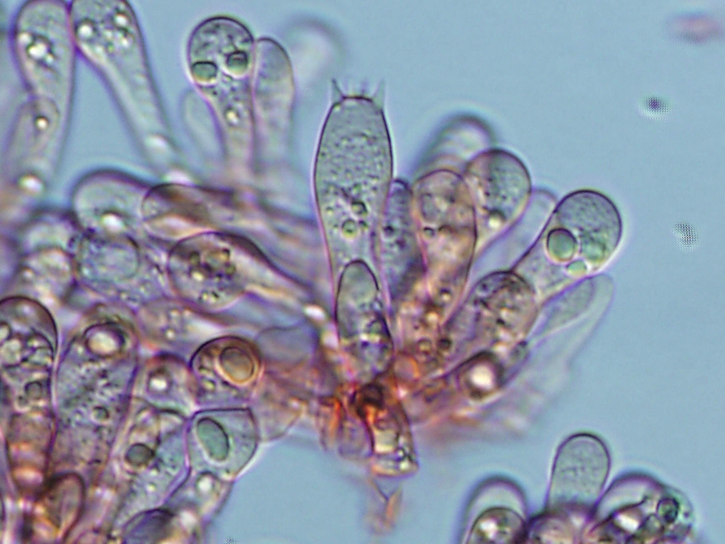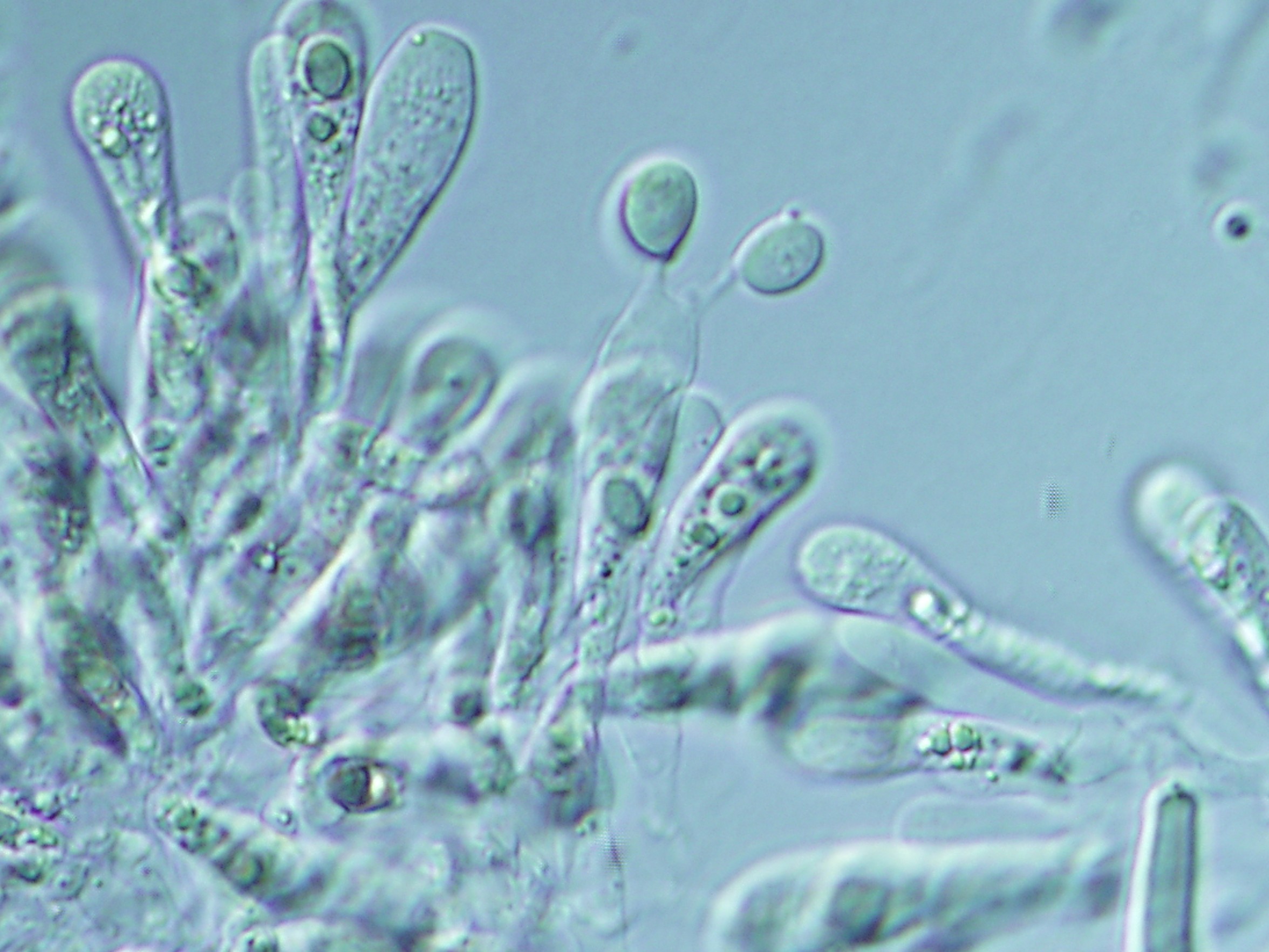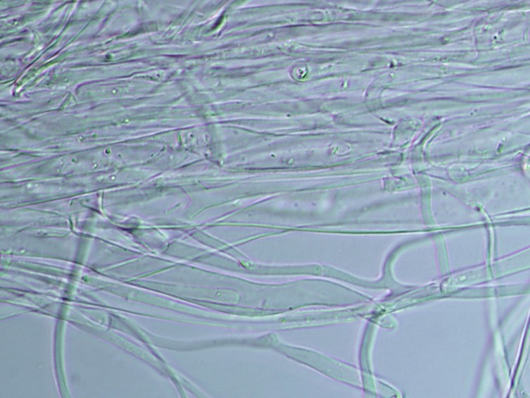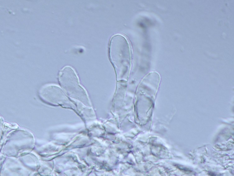 Basidiomata. Pileus 45–90 mm wide, hemispherical at first then plano-convex to concave, strong orange yellow or vivid yellow over centre, vivid yellow to brilliant yellow toward margin, slightly depressed at centre, dry and smooth surface, shiny appearance. Lamellae pale yellow, close to crowded. Stipe 60–110 × 9–13 mm, pale yellow upward, yellow white to white toward, narrowing upward or cylindric, fibrillose; context white, unchanging when cut or bruised, fistulose. Volva 1–3 mm thick, yellow white to white. Basidiospores 7–10 × 6–7 μm, broadly ellipsoid to globose or subglobose, hyaline, thin-walled, smooth. Basidia 45–55 × 9–10 μm, sterigmata 1–2 μm long, thin-walled, clavate shape, hyaline. Cheilocystidia 25–50 × 10–20 μm, clavate or fusoid shaped, hyaline thin-walled. Pileipellis 2–25 μm thick, branched, septate, hyaline to pale yellow. Stipitipellis 2–32.5 µm thick, hyaline to pale yellow, branch, septate. Clamp connections absent.