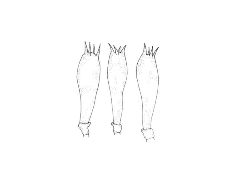 inner layer more or less same as outer layer but the globose or subglobose not frequently present. Annulus composed with tightly arranged hyphae, 3.8-5.3 µm, thin walled, hyaline, branched, oil granules present with KOH.