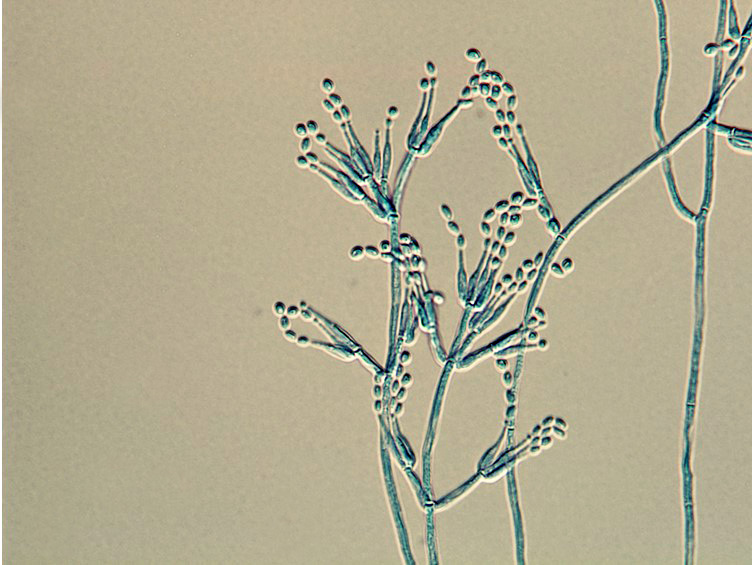 phialides in whorls of two to five. Phialides 7–12 × 2–3 μm, with a cylindrical to ellipsoidal basal portion, tapering into a distinct neck, 1–5 × 1–1.5 μm. Conidia in chains, hyaline, mostly fusiform or lemon-shaped, 1-celled, 2–4 × 1–2 μm.