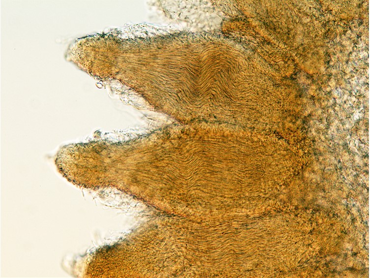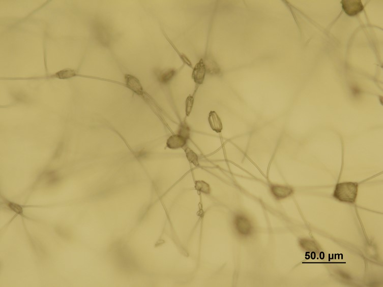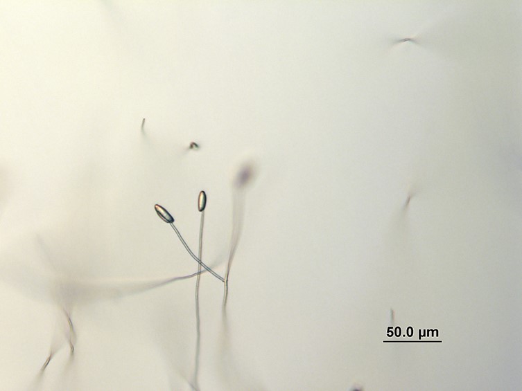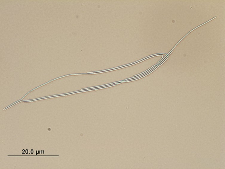 Ascospores hyaline, whole, filiform, multi-septate, 95-135 × 1 μm.