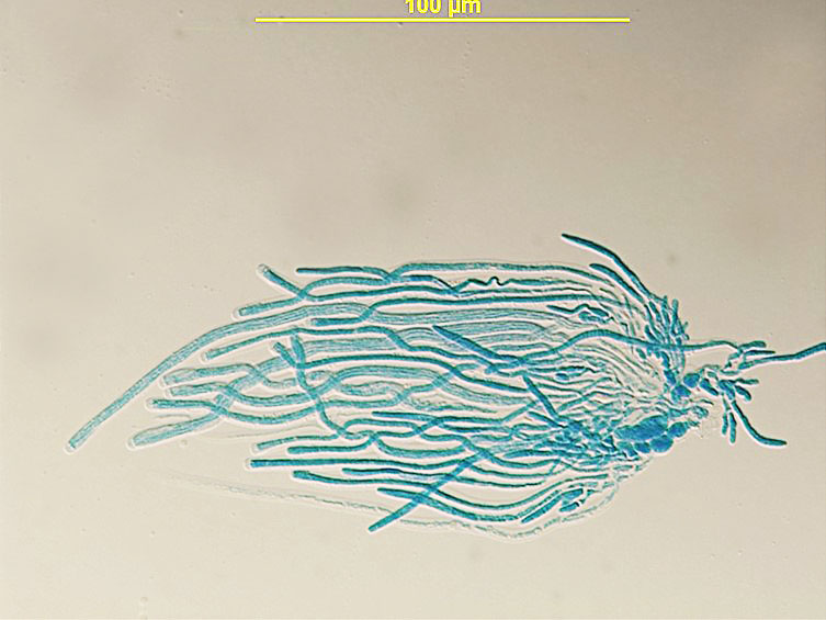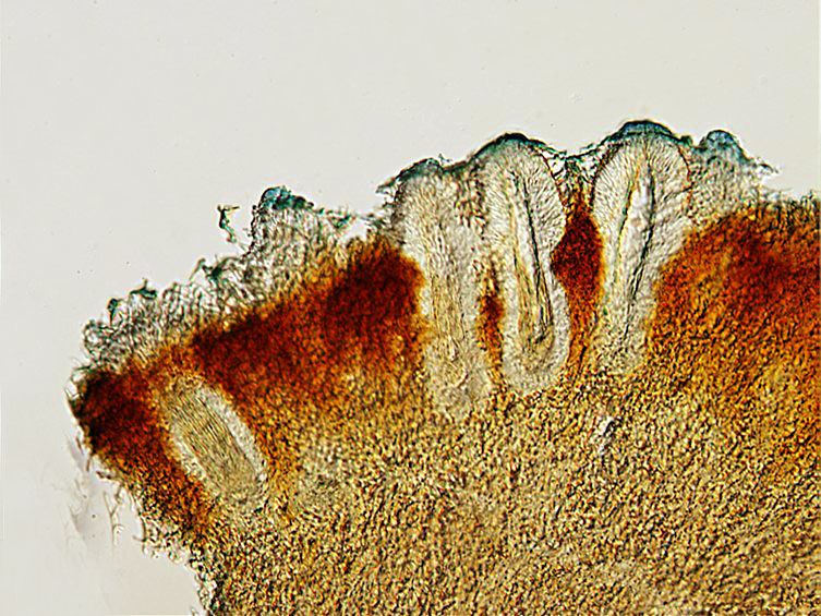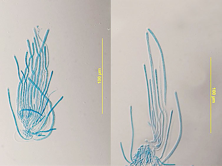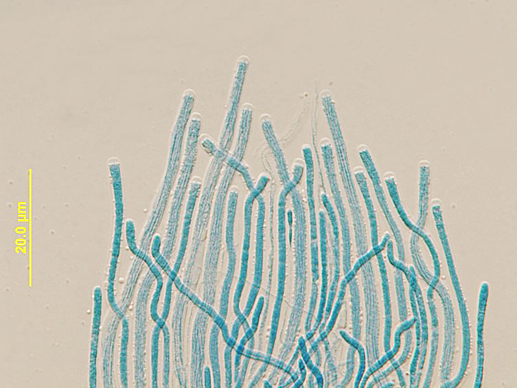 Asci cylindrical, 129-175 × 3-6 μm. Asci caps 1-2 × 2.5-4 μm.