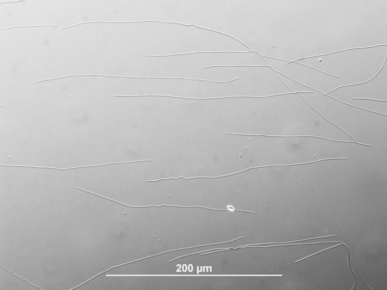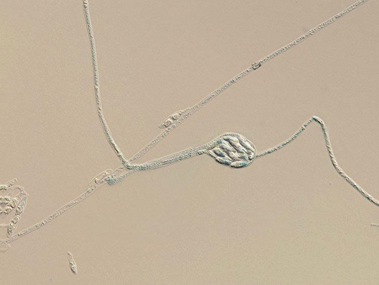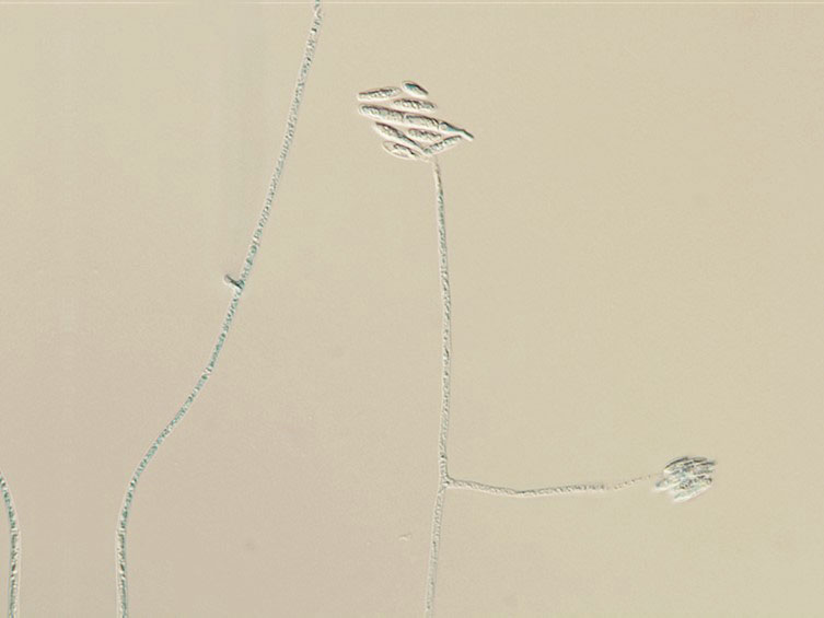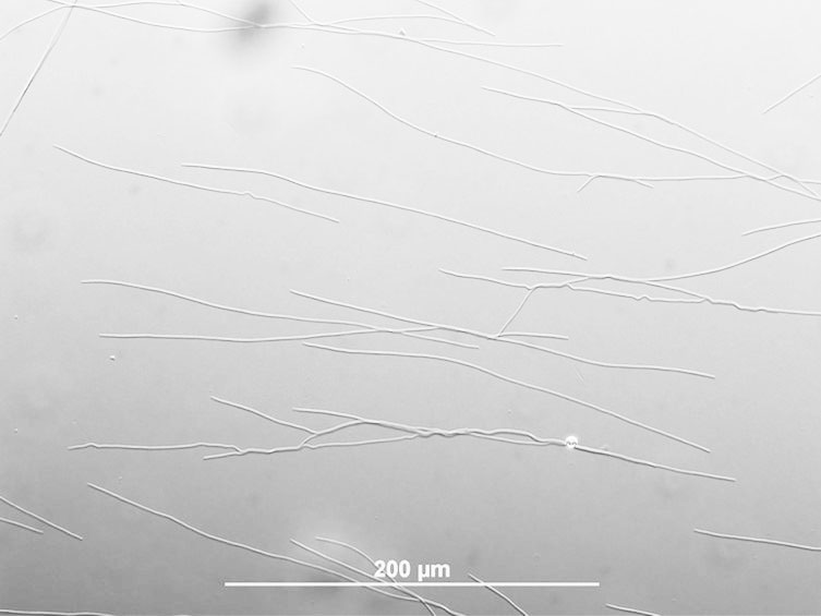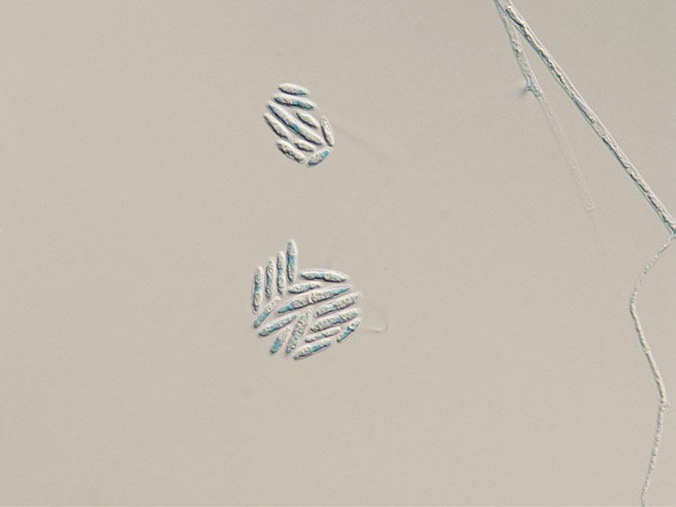 Ascospores hyaline, whole, filiform, aseptate, 131-216 × 0.5 μm.