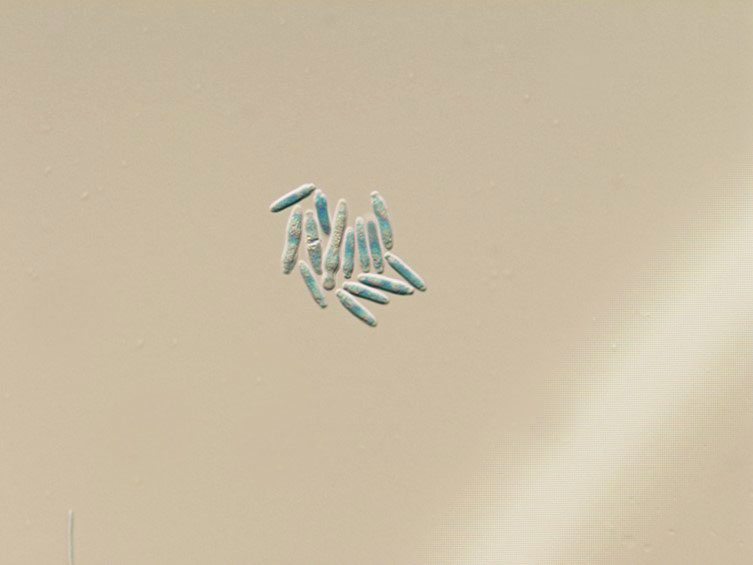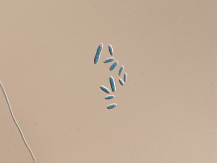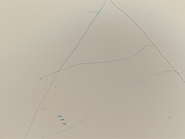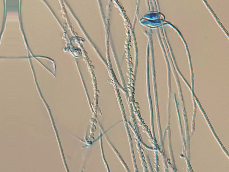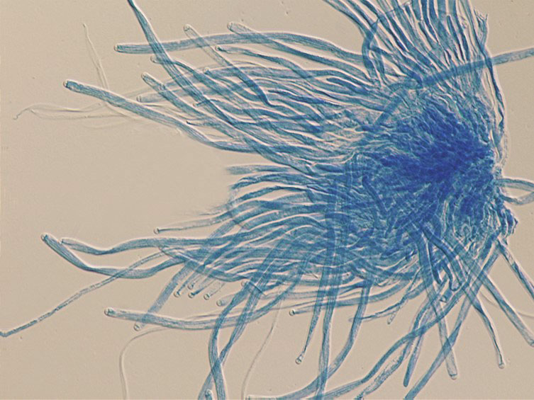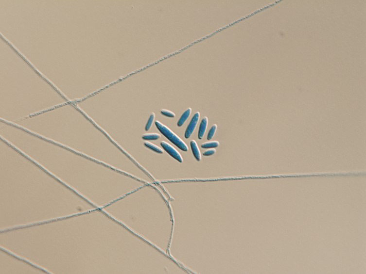 Asci cylindrical, 150-193 × 4-5 μm. Asci caps 1.5-2 × 3-3.5 μm. Ascospores hyaline, whole, filiform, aseptate, extending the length of ascus.