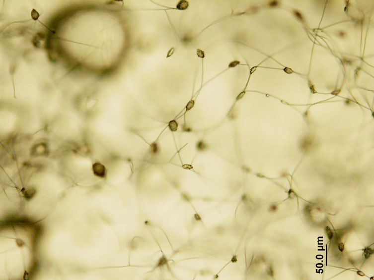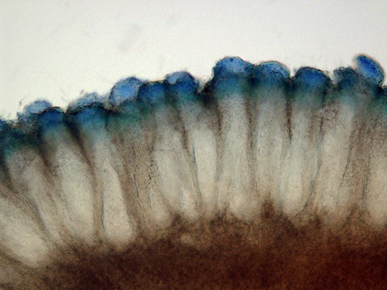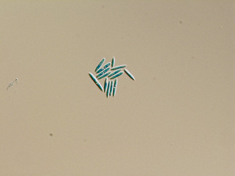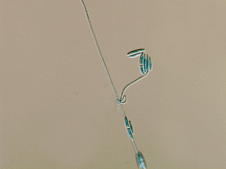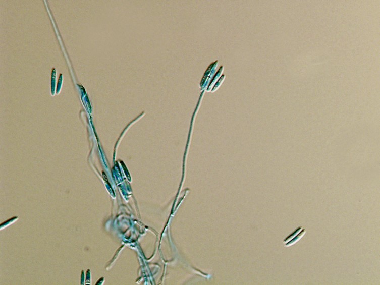 Asci cylindrical, up to 215 μm. long, 3-4 μm. wide. Asci caps 2-4 × 3-4 μm.
