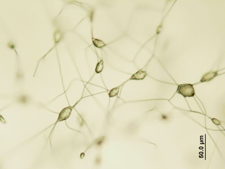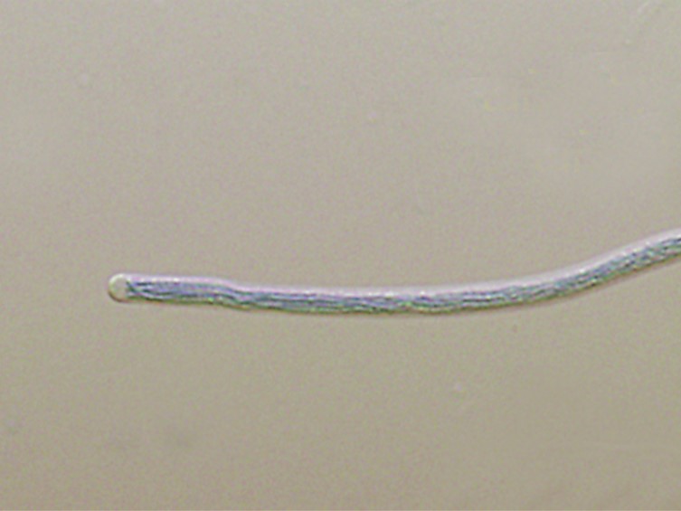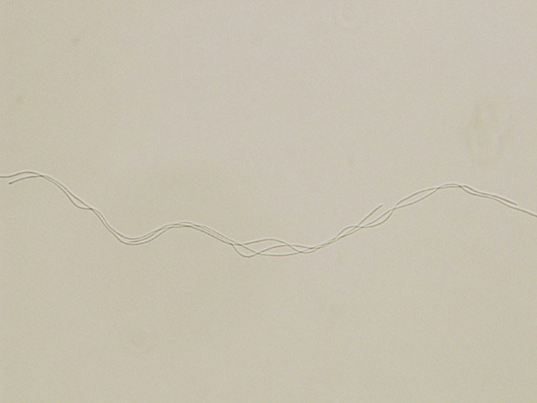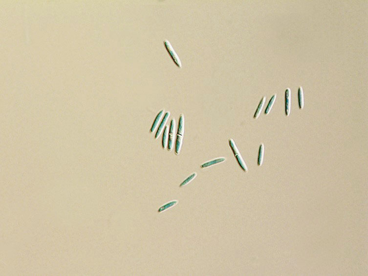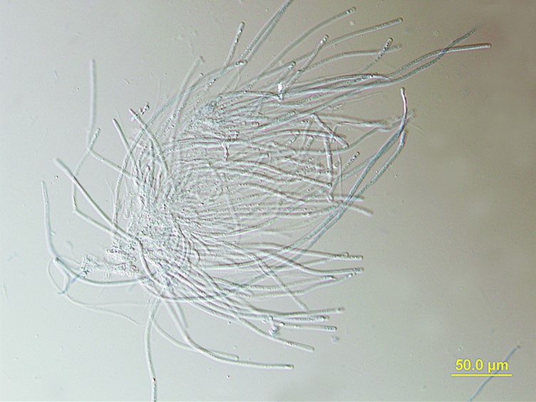 Ascospores hyaline, whole, filiform, aseptate, 175-200 × 1 μm.
