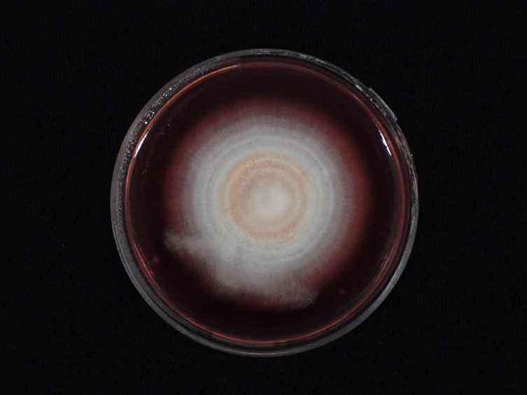 Colony on PDA attaining a diam of 3–4 cm in 14 d, cottony, white, pale orang in the middle of colony, reverse dark red in the middle, bright strong purplish red pigment diffusing in medium. Phialides arising from aerial hyphae, solitary, cylindrical or acremonium-like, up to 50 μm long, 1–2 μm wide. Conidia hyaline, enteroblastic, fusiform to acerose, early in development aseptate, mostly becoming 1 septum, occasionally 2–3 septa, aggregated at the apex of the phialides, 7–22 × 1.5–3 μm.