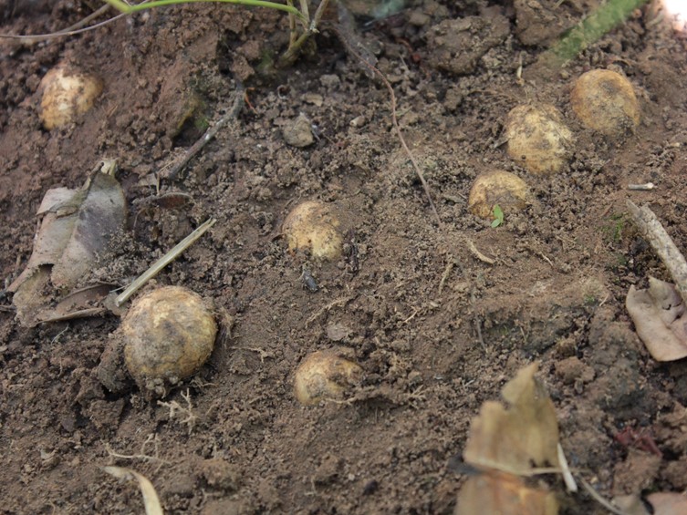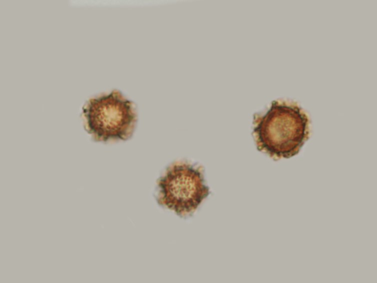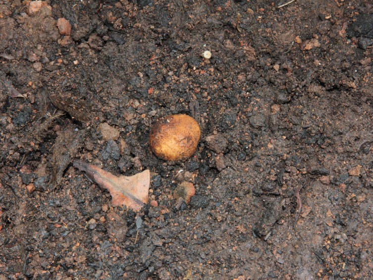 Basidiomes globose or subglobose, submerged, sessile, becoming superficial, 10–22 mm. in diam., smooth surface with few soil stick particles, splitting to become star-shaped when old; basal mycelium consisting of brown vinaceous or bay rhizomorphs. Outer peridium yellowish brown, consisting of several layers, ≤1 mm. when dry, at maturity splitting into 4–6 broad. Endoperidium sessile, subglobose, ca. 13–25 mm. broad, yellowish brown to brownish, opening by irregular apical mouth, lacking defined peristome. Gleba frequently brown, columella none; capillitium of long, branched, interwoven, hyaline, aseptate, slightly encrusted, threads 2–6 μm in diam.; thin-walled with a narrow continuous lumen; clamp-connections occasional, usually absent. Basidospores globose, 6–10 μm in diam. including ornamentation, brown, ornamented with moderately dense, rounded, long, narrow, connate spines, 1–3 μm long.
