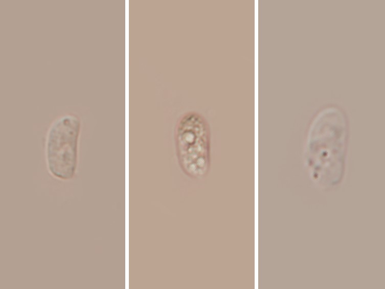 Basidiospores smooth walled, allantoid, hyaline, 9.0-11.3 × 4.5-5.0 μm, with one large irregularly shaped guttule.