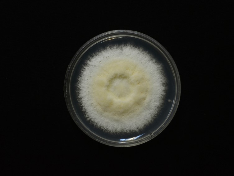Colony on PDA dense, floccose, velutinous, closely appressed and slightly convex to the agar surface, greenish white in the middle, margin white, sporulation starts at 10 d after inoculation, 25−26 mm diam in 10 d, 50−52 diam in 20 d.