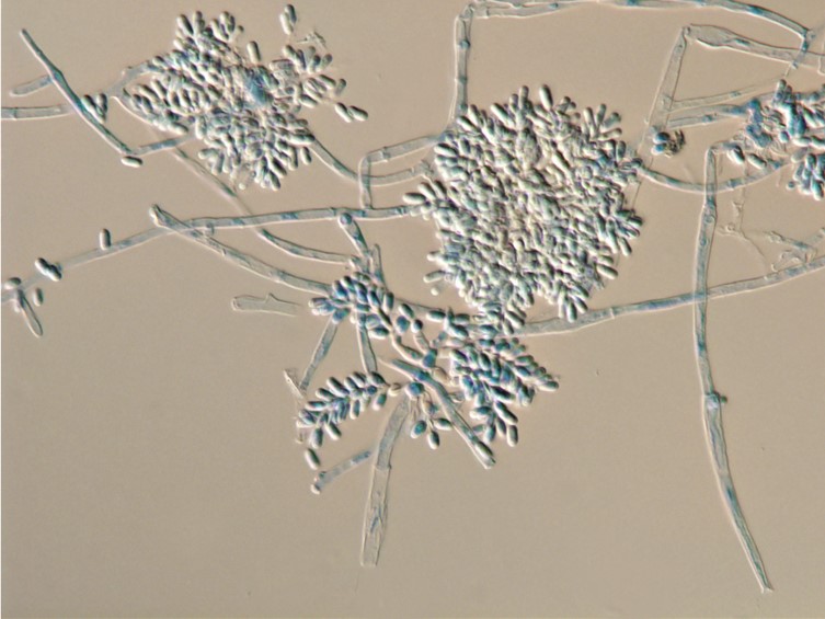 Conidia hyaline, walls smooth, cylindrical, 2-5.5 × 1-2 μm.