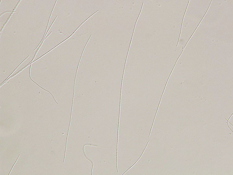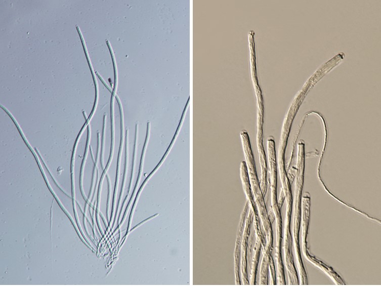 Asci cylindrical, 8-spored, up to 350 × 4-5 μm, with cap 2-3 μm thick.