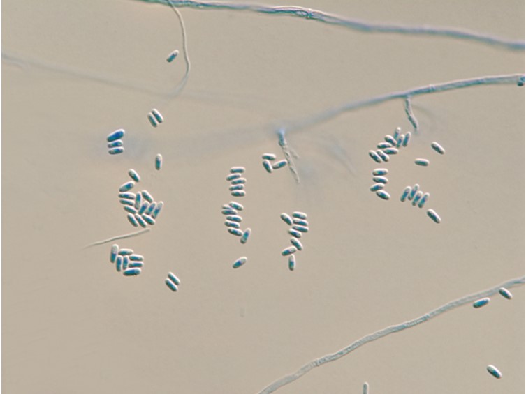 Ascospores hyaline, multi-septate, 200-330 × 1-1.5 μm. Ascospores germinated after 24 h, conidia ovoid, cylindrical with age, one-celled, 2-5 × 1.5-2 μm. Anamorph: Conidial arrangement, evlachovaea-like.