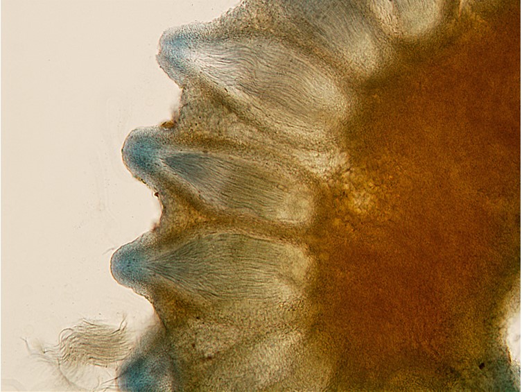 Asci cylindrical, eight-spored, up to 220 × 4-5 μm, with cap 2-3 μm thick.