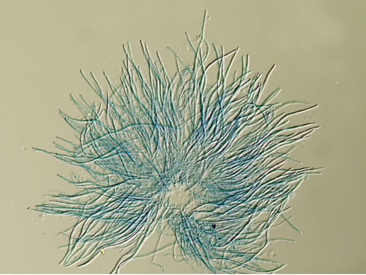 Ascospores hyaline, filiform, multi-septate, 125-180 × 1-1.5 μm. Anamorph: Two types of conidial arrangement: acremonium-like, conidia aggregated in heads at the apex of phialides; mariannaea-like, conidia in imbricate chains, connected to each other laterally.