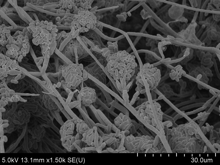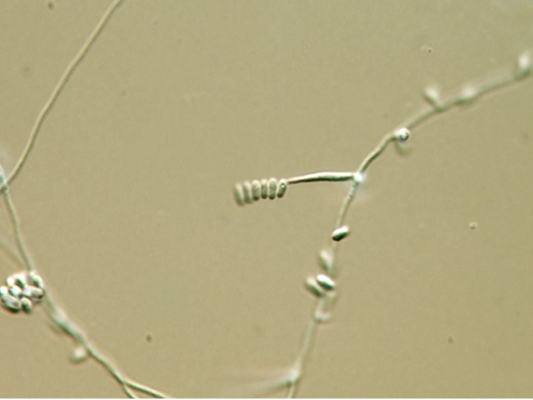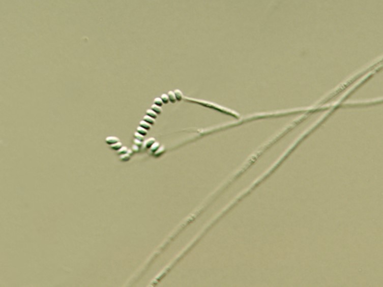 Colony on PDA attaining a diam of 30 mm in 10 d, cottony with high mycelium density, white, powdery after 21 d. Phialides arising from aerial hyphae, solitary or in whorls of two to five on each branch, gradually tapering from the base to the apex, 5–15 × 1–2 μm. Conidia hyaline, oblong-elliptical or ellipsoidal, smooth, one-celled, 2–5 × 1.5–2 μm.