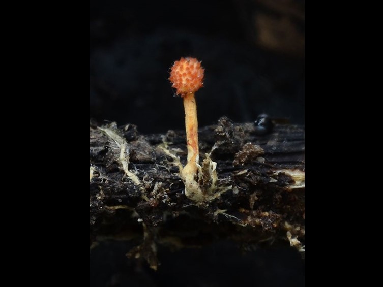 Stromata multiple, unbranched, 5–6 mm long and 1.5–2 mm broad, cream to pale orange, cylindrical to enlarging apically. Rhizoids flexuous arising from the thorax and abdomen of coleopteran larva buried in decaying wood, 5 mm deep. Fertile part orange yellow, subglobose, 1.5–2 mm long, 1.5 mm broad.