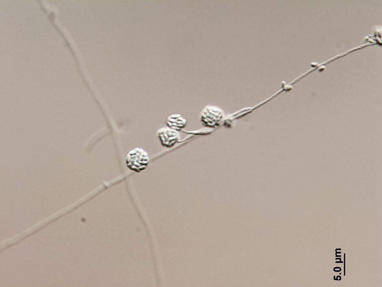 Ascospores hyaline, filiform, multi-septate, 135–315 × 1 μm. Anamorph: Two types of conidial arrangement: acremonium-like, conidia aggregated in heads at the apex of phialides; mariannaea-like, conidia in imbricate chains, connected to each other laterally.