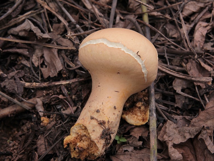 pseudoparenchymatous layer. Endoperidium olive-brown, formed by septate, dichotomously branched non porous thin-walled hyphae ca. 5 μm diam. Gleba cottony, fulvous (light yellow in slightly immature specimens). Subgleba prominent, cellular, olive-brown, concolorous with a glebal centre in slightly immature specimens, 2-3 cm high and 2-3 cm diam.