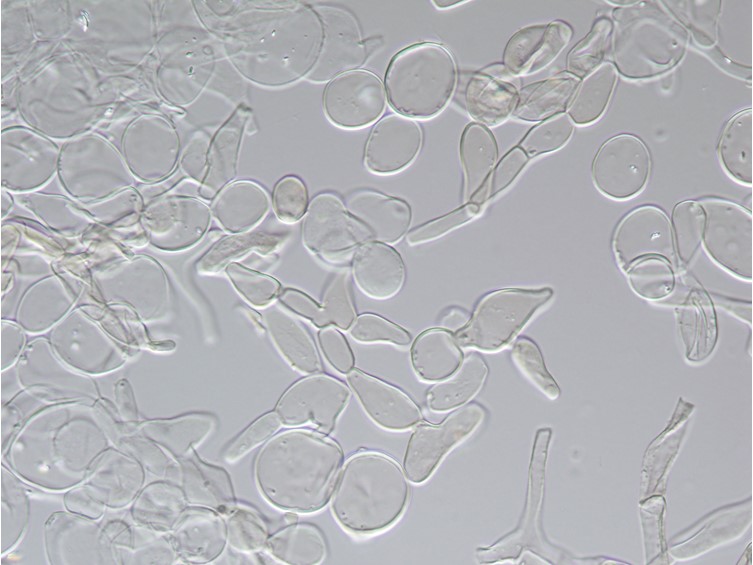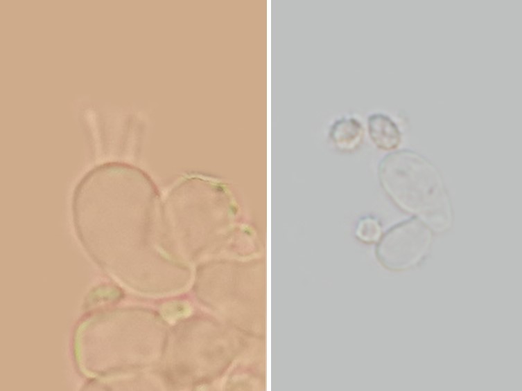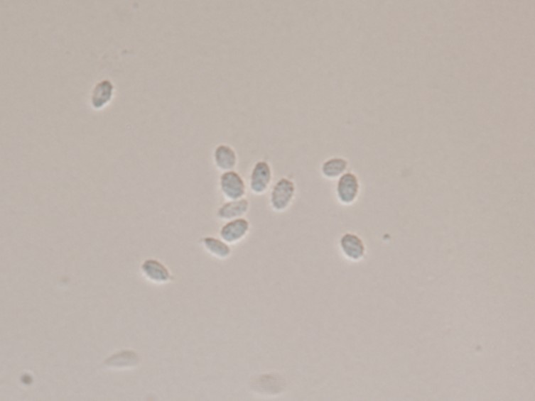 Basidiospores ellipsoid to oblong-ovoid, hyaline, echinate, uni- or two-guttulate, 3-5 × 2-3 μm, without pedicels. Spines 0.3-0.5 μm high arranged in broken longitudinal crests. Capillitium 2-4 μm diam, thinwalled, branching, subhyaline to light brown, formed by fragile threads, septate, with blunt ends. Pores roundish, up to 2 μm diam, with flat or unbended margins.