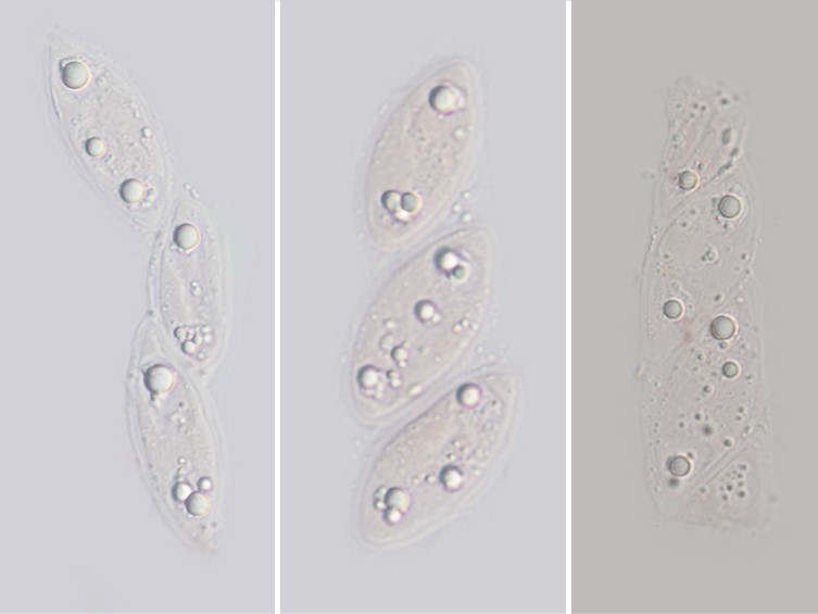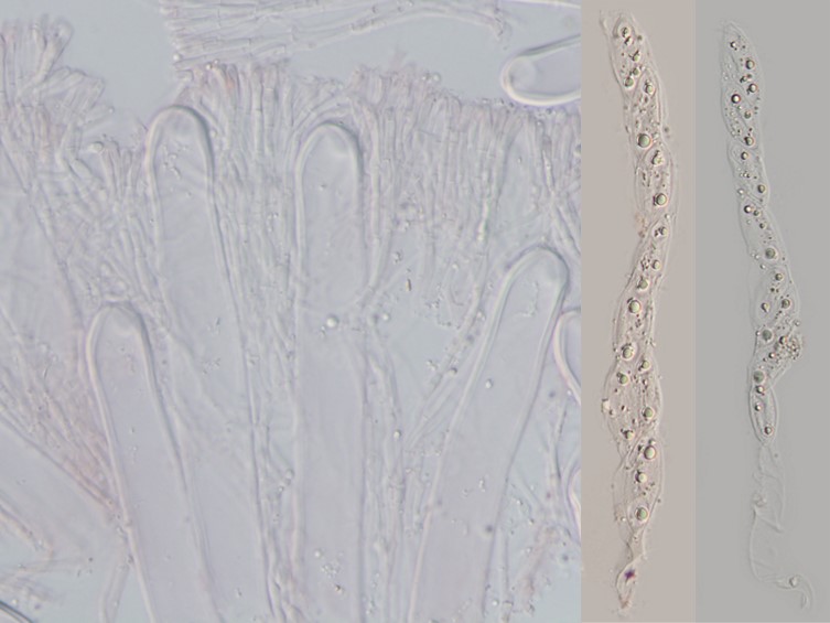 Ascospores 32.5 × 12.5 μm, uniseriate, 1-celled, ovoid, ends slightly narrowed, hyaline or subhyaline with one or two large oil-drops, aseptate, smooth, thin-walled, with thick gelatinous sheath. Asexual morph: Undetermined.