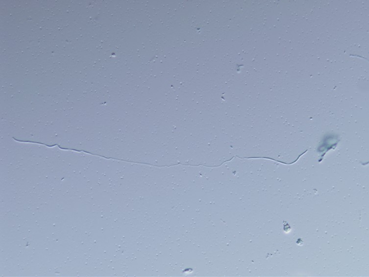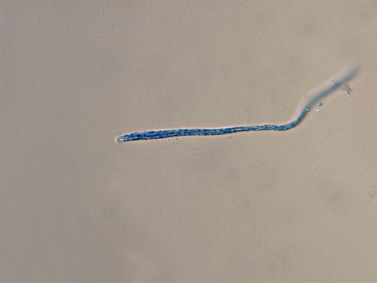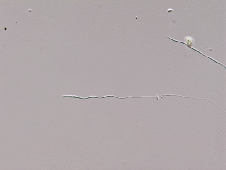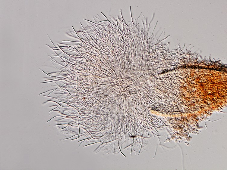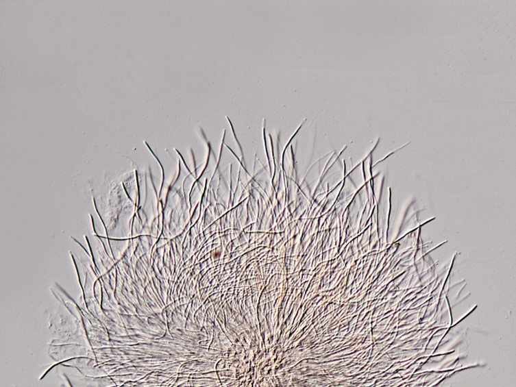 Asci cylindrical, eightspored, 60-250 × 2-2.5 μm. Ascospores hyaline, whole, bola-shaped, 250-400 μm, central part filiform, 0.3 μm broad, terminal part narrowly fusiform, with 3- or 4-septa, 30-65 × 0.5 μm. Anamorph: Conidial arrangement, evlachovaea-like.