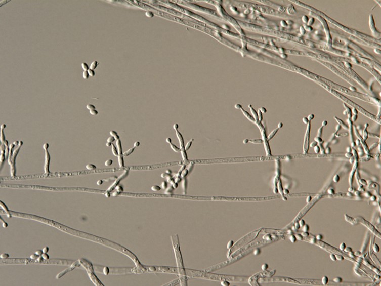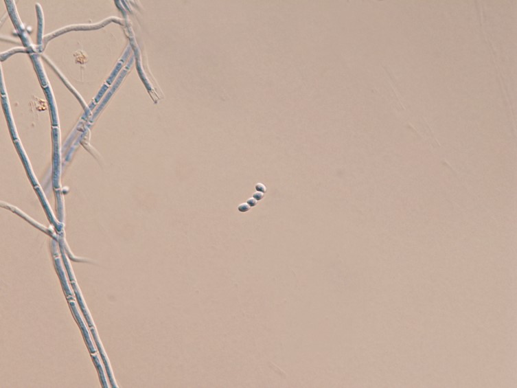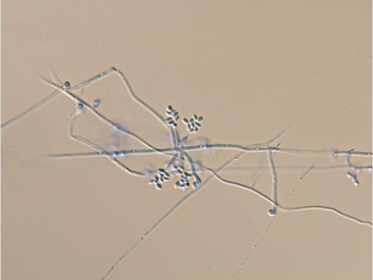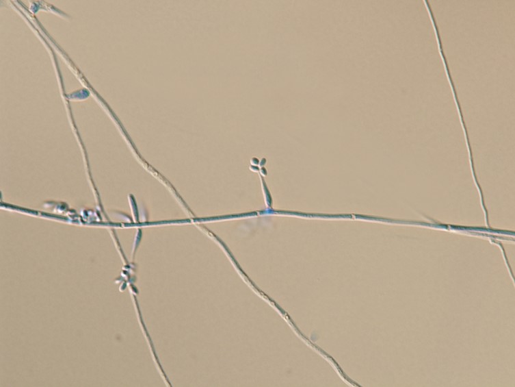 Colony on PDA attaining a diam of 30 mm in 10 d, cottony with high mycelium density, orange pink at the colony edges, white in the middle. Phialides arising from aerial hyphae, solitary, or in whorls of two to three on each branch, 5–8 × 1.5–2 μm, swollen at the base tapering into the apex. Conidia hyaline, fusoid to ovoid, smooth, one-celled, 3–5 × 1–2 μm.