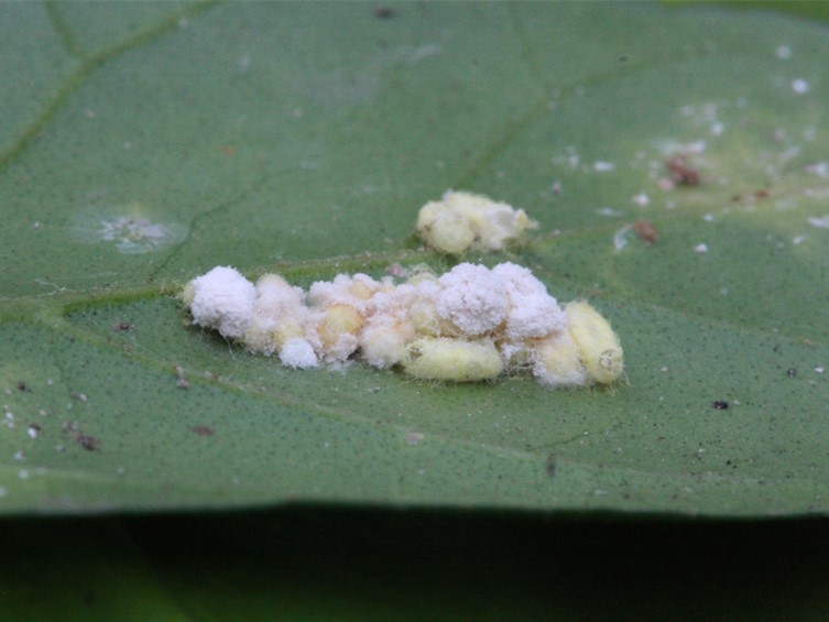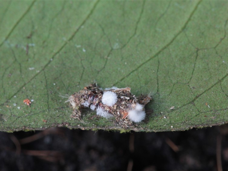 Leaf litter, underside of a leaf, twig of tree.