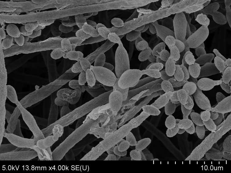 Colony developed from germinating conidia. The conidia germinated within 24 h on PDA. Evlachovaea-like conidial morphs developing after ca 7 d. Colonies on PDA fast growing, ca 2.5 cm diam in 14 d at 25 °C. Colonies pale pink, becoming white when sporulating abundantly after 30 d, reverse deep pink. Conidial structures consisting of erect conidiophores borne or aerial hyphae, verticillate with phialides in whorls of two to four. Some phialides borne directly and singly on aerial hyphae. Phialides 3–10 × 1.5–2 µm, with swollen, ellipsoidal basal portion, necks present, 1–3 × 1 µm. Conidia hyaline, ellipsoidal, fusiform, aseptate, 3–4 × 1.5–2 μm.