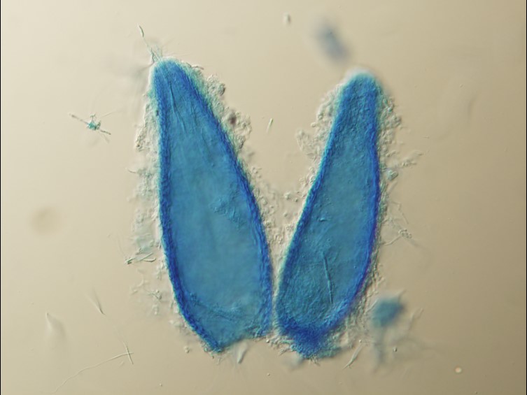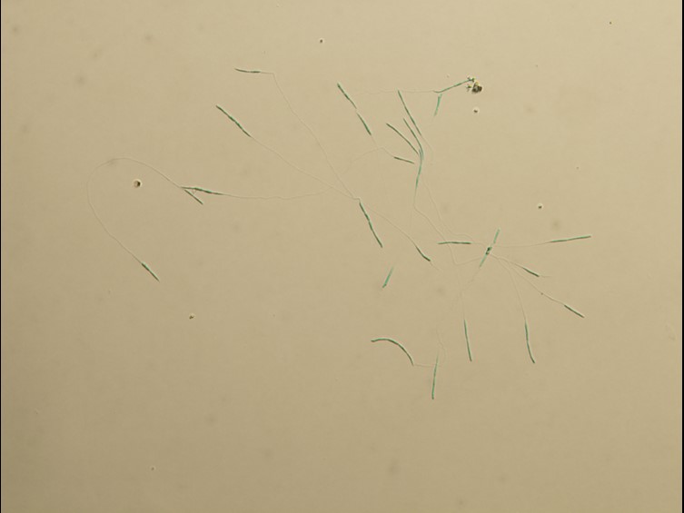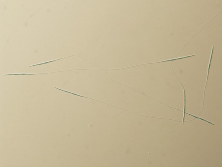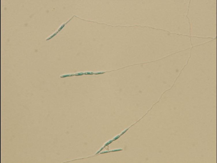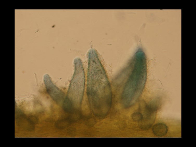 Phialides cylindrical with tapering ends, smooth-walled, 16–20 × 2–3 μm.