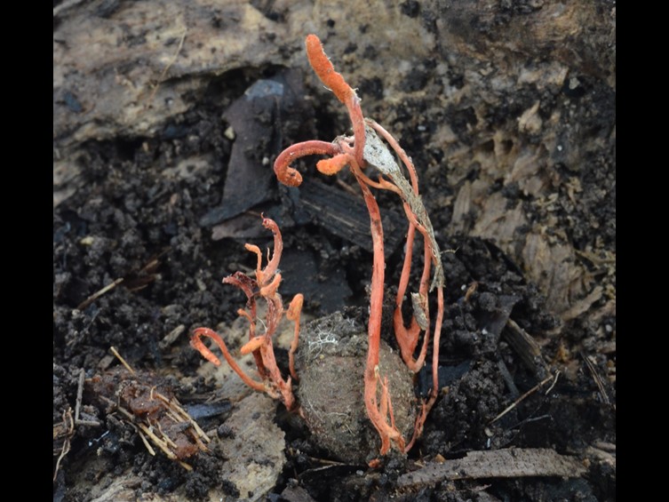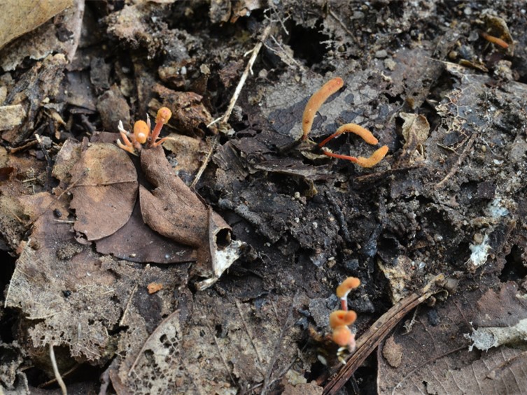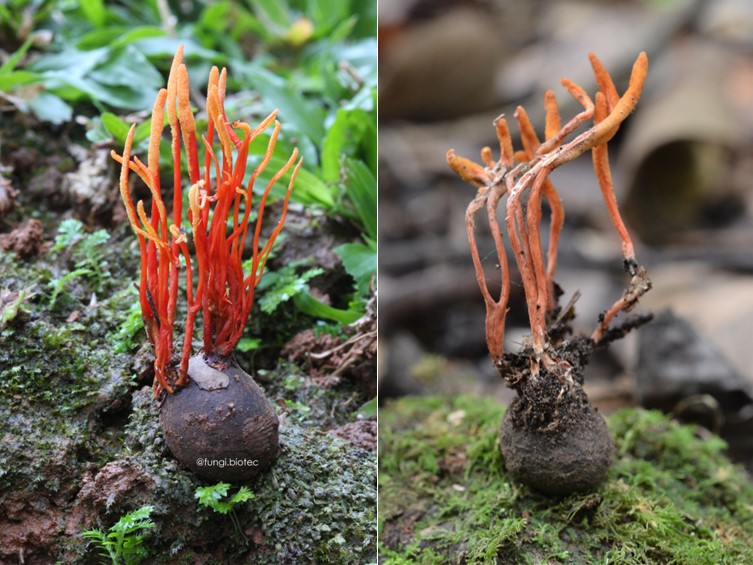 Stromata multiple, occasionally branched, 15-45 mm long and 0.5-1 mm broad, brownish orange. Rhizoids flexuous, arising from the head region of pupa inside a cocoon buried in soil, 10-20 mm deep underground. Fertile part strong orange, cylindrical, 3-12 mm long, 1.5-2 mm broad.