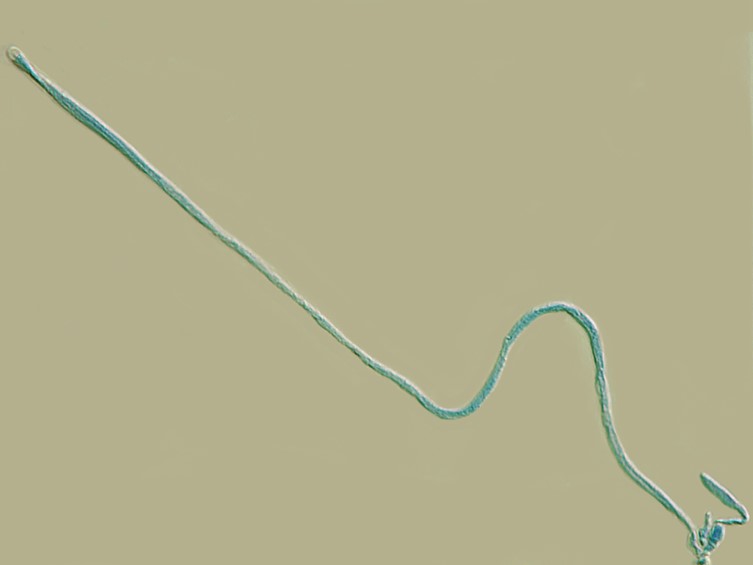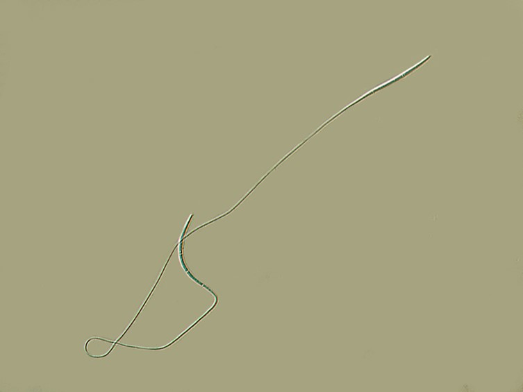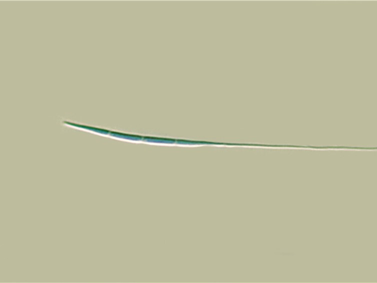 Asci cylindrical, eight-spored, up to 280 × 4-5 μm, with cap 2-3 μm thick. Ascospores hyaline, whole, bola-shaped, 135-275 μm long, central part filiform,0.5 μm broad, terminal part, narrowly fusiform with three or five septa, narrowly fusiform, 20-50 × 0.5-1 μm. Ascospores germinated after 24 h, conidia, ovoid, cylindrical with age, one-celled, 3-3.5 × 1-1.5 μm. Anamorph: Conidial arrangement, mariannaea-like, conidia in imbricate chains, connected to each other laterally.