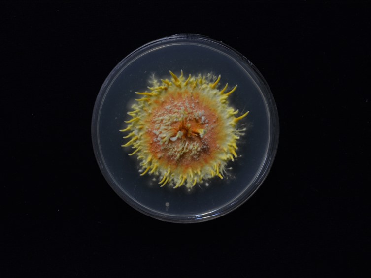 Colony on PDA attaining a diam of 35 mm in 21 d, floccose, strong yellow pink, with vivid yellow border. Synnemata awl-shaped, orange with white apex, scattered around the colony, 2–10 × 1 mm. Conidiophores either arising from prostrate hyphae and aerial hyphae, forming verticillate branches with phialides in whorls of two to four, occasionally singly along the aerial hyphae. Phialides with cylindrical to ellipsoidal basal portion, gradually tapering from the base to the apex, 8–20 × 1–2 μm. Conidia irregularly ellipsoidal, cylindrical, 3–10 × 1–2 μm, with one septum in mature conidia.