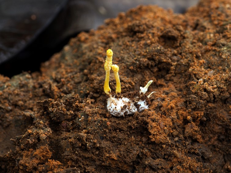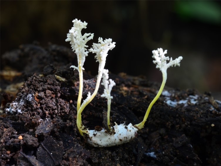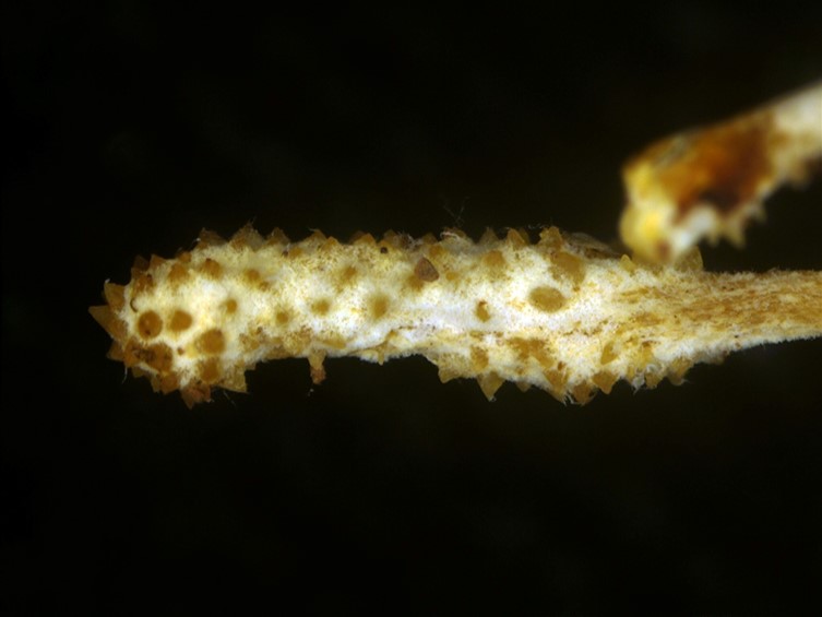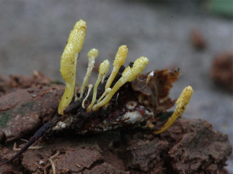 Stromata (rarely solitary) more usually forming aggregations of 2–8 stromata, cylindrical or clavate, 1–4 cm tall, fleshy, almost fragile fertile part at the upper half of the stroma.