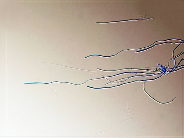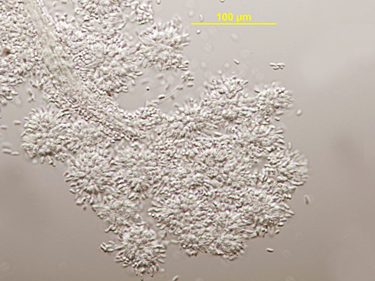 Asci cylindrical, hyaline, 150–300 × 2–3 µm. Ascospores whole, hyaline, bola-shaped, 280–300 × 1–2 µm.