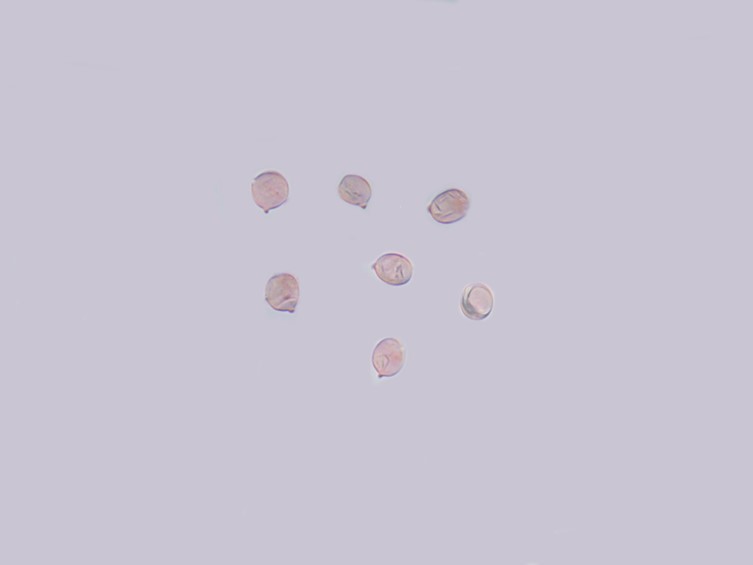 Basidiospores 9.5–12.5 × 6.25–10 µm subglobose, hyaline, smooth, amyloid, granular.