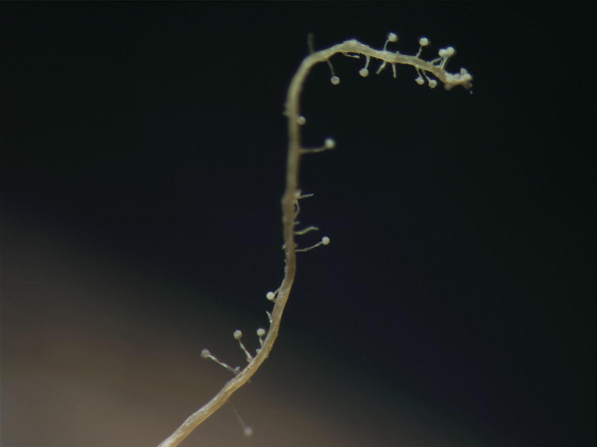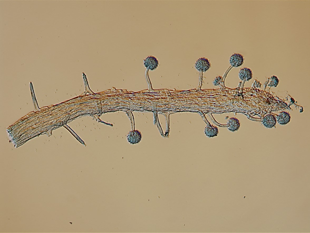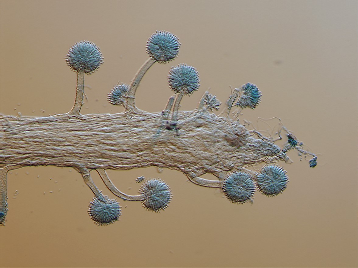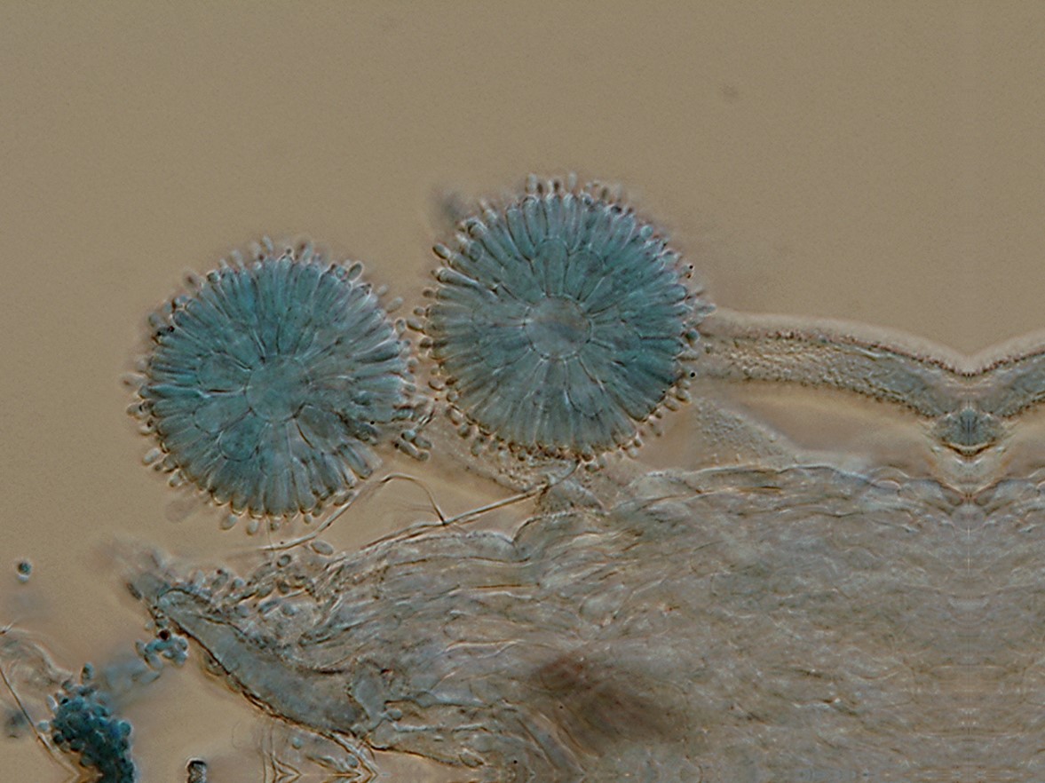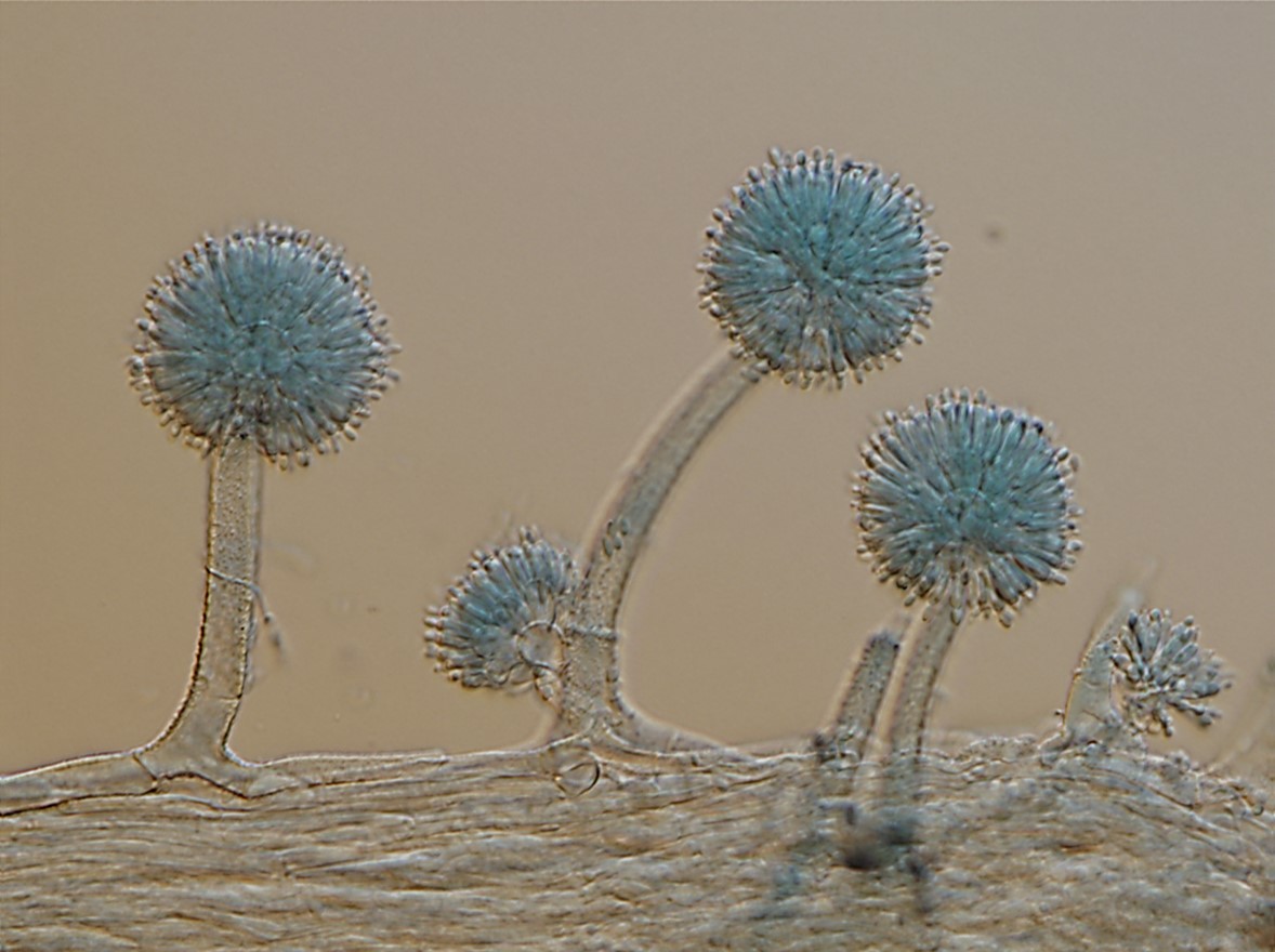 Phialides borne on metulae, narrowly clavate to cylindrical, apically thickened, occasionally with very short neck, 6–9 × 2–3 µm, each bearing a conidium. A vesicle, metulae and phialides forming a spherical conidial head, 38–42 µm diam.