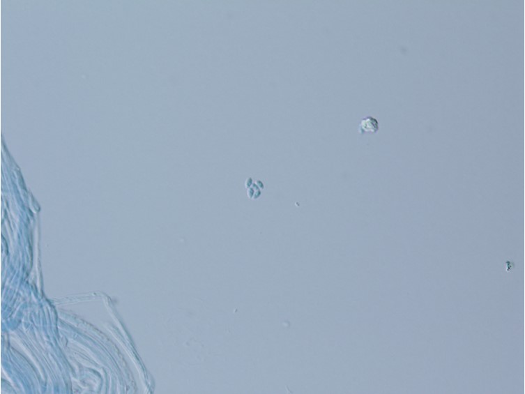 Conidia ellipsoid to ovoid, occasionally globose, 1.5–3 × 1–2 µm.
