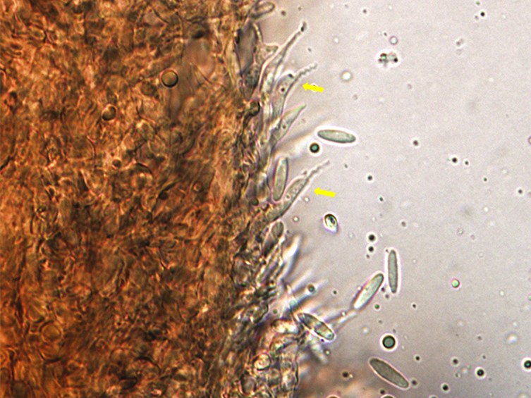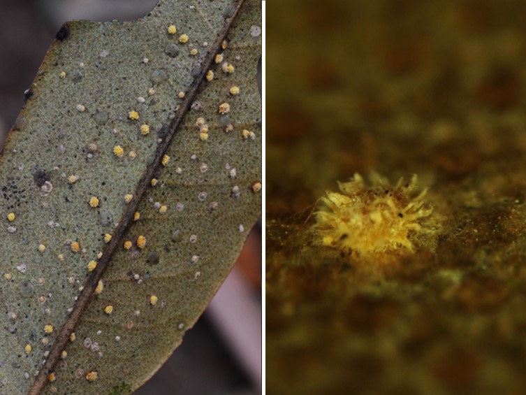 Stromata pulvinate, greyish yellow, up to 2-3 mm diam.