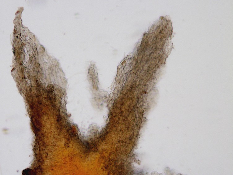 Indeterminate synnemata in numbers of 2-30, formed on stromata, up to 800 μm long, 100-120 μm wide.