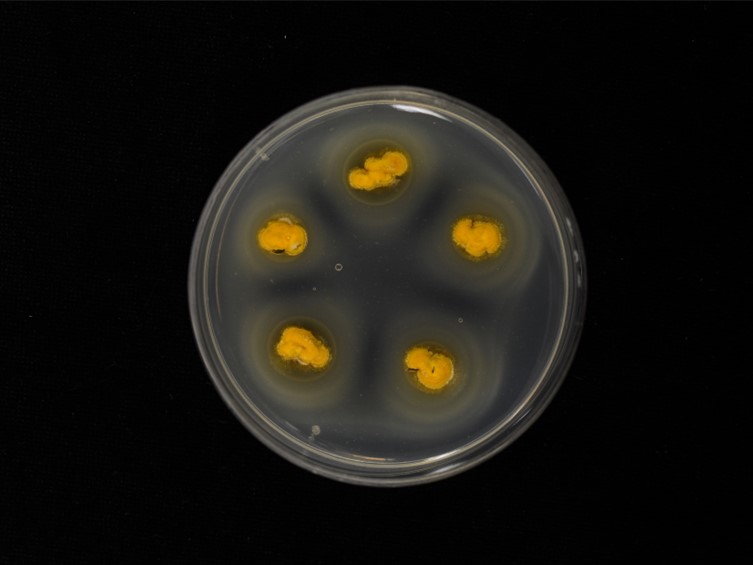 Colonies on PDA attaining a diam of 0.5 cm diam in 2 wk at 25 °C, aerial mycelium greyish orange forming a compact, somewhat stromatic felt. Conidial masses vivid yellow, covering stromatic colonies at 2 weeks. Phialides (hirsutella-like) formed laterally by hyphae, appearing yellowish because of cell content, entire phialides 12–20 × 3–4 μm, hyaline, helical necks present, up to 10 μm long. Conidia fusoid to cylindrical, hyaline, aseptate, smooth-walled, 8–15 × 3–4 μm.
